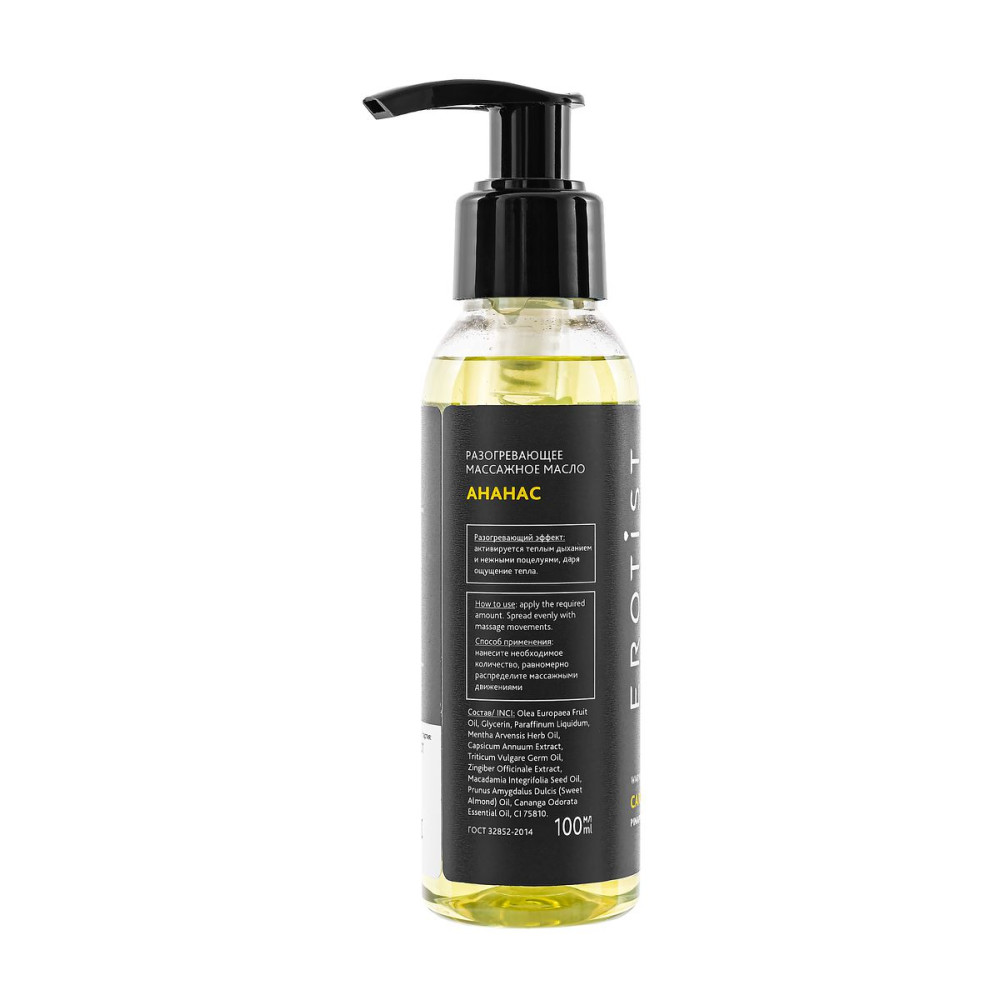 В составе — комбинация натуральных масел: оливы, миндаля, макадамии и зародышей пшеницы, которые питают и увлажняют кожу. Экстракт имбиря в тандеме с экстрактом перца создают мягкий согревающий эффект, усиливающий отклик кожи на прикосновения. Масло мяты освежает, а иланг-иланг раскрывает чувственный аромат, делая массаж более атмосферным.