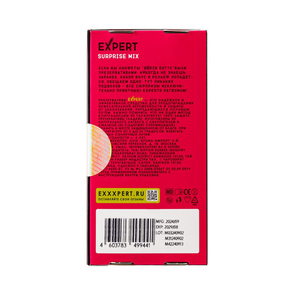Теперь вы можете приобрести большую упаковку презервативов EXPERT Surprise Mix, в которой содержится 15. Это отличная возможность сэкономить и быть уверенным, что у вас всегда есть запас надежной защиты. Больше не придется беспокоиться о том, что презервативы закончатся в самый неподходящий момент.