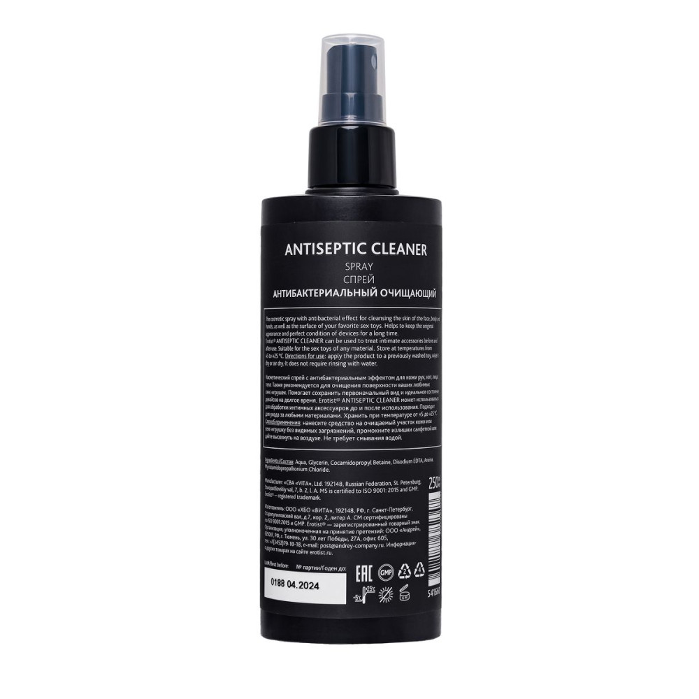 Для наилучшего эффекта помойте игрушку водой, а затем нанесите Anticeptic Cleaner от Erotist®. Промокните излишки салфеткой или дайте высохнуть на воздухе.