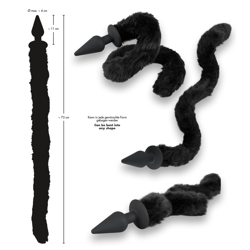 Анальная пробка с небольшим основанием, к которому прикреплен хвост из искусственного меха.Хвост гнётся и сохраняет форму.