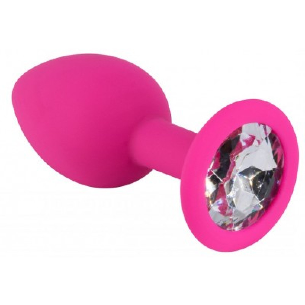 Розовая силиконовая пробка с прозрачным кристаллом М