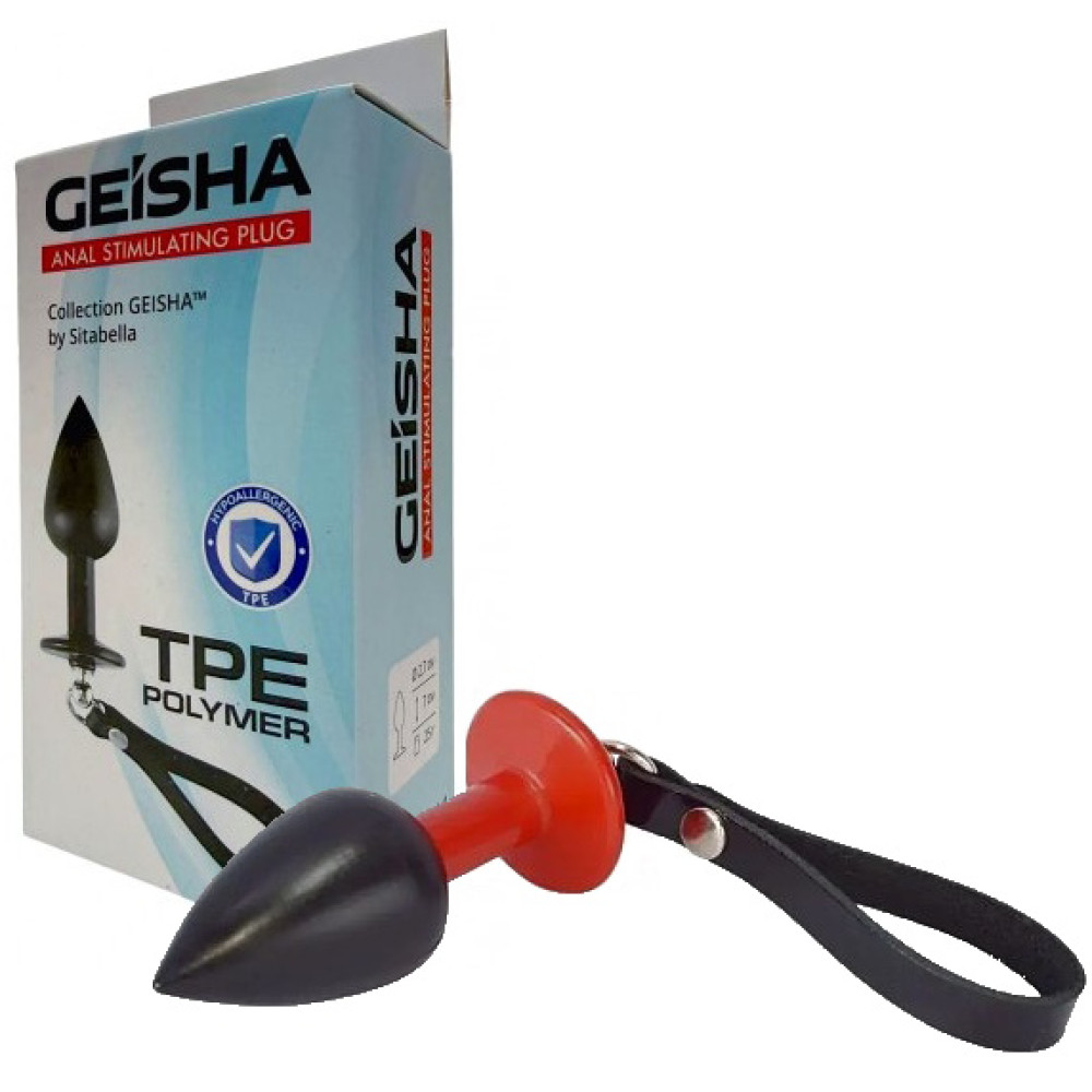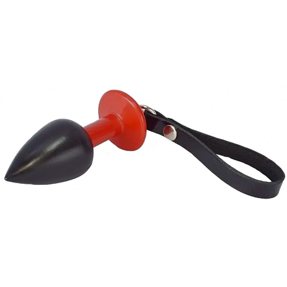 Черно-красная анальная втулка с ремешком из натуральной кожи Sitabella