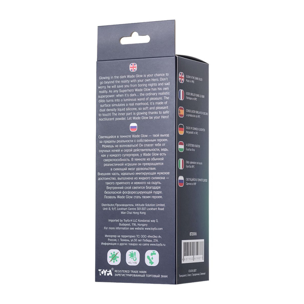 Внешняя часть, идеально имитирующая мужское достоинство, выполнена из жидкого силикона — такого приятного и нежного на ощупь. Внутренний слой светится благодаря безопасной фосфоресцирующей пудре. Позволь Wade Glow стать твоим героем.