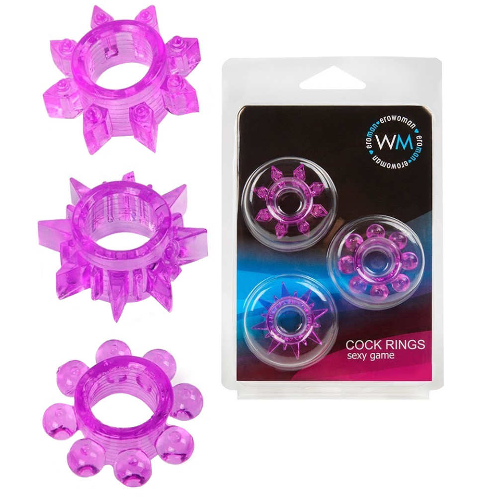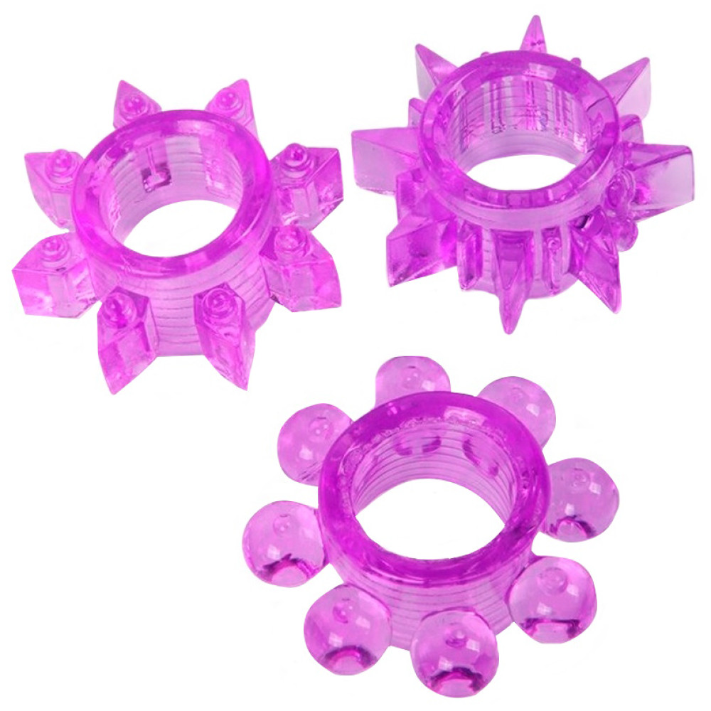 Небольшие шипики и выпуклости на внешней поверхности колец стимулируют интимные зоны.
