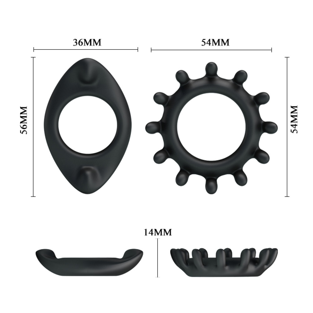 Набор состоит из 2 эрекционных колец разного диаметра. Кольца выполнены из плотного шелковистого силикона и обеспечат надежное пролонгирование.