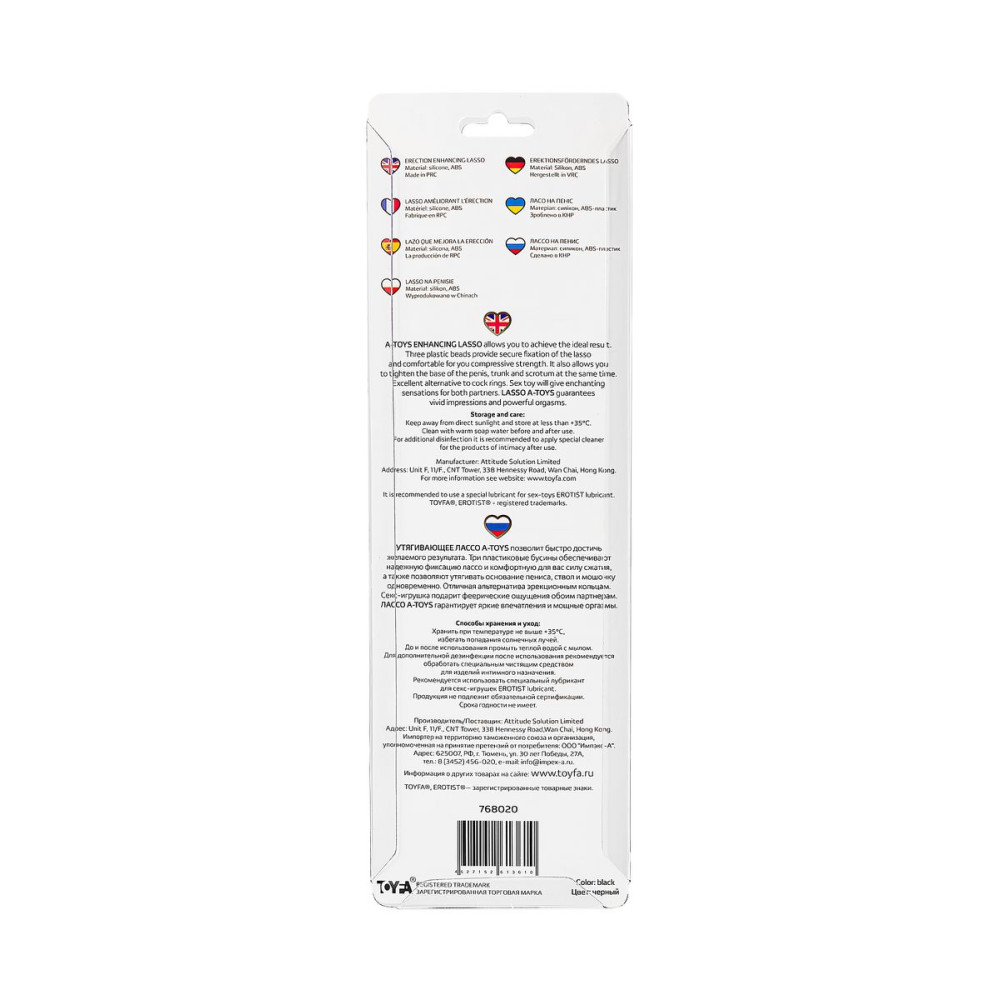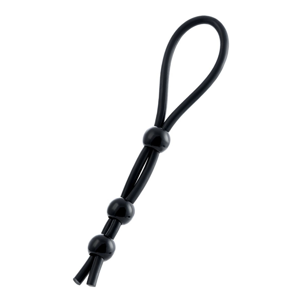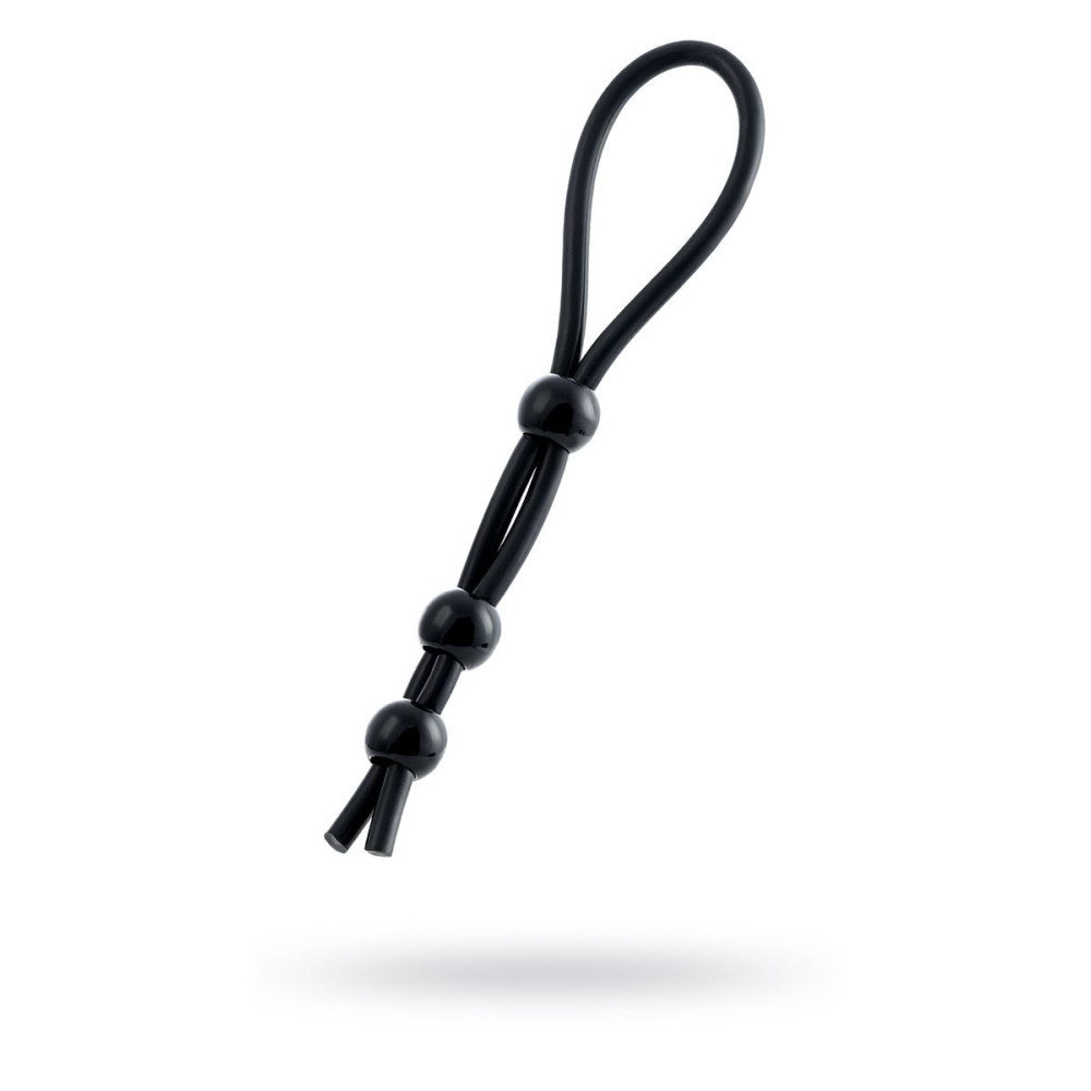 Лассо на пенис A-Toys by TOYFA Leatt с тремя бусинами, силикон, черный, 19,5 см