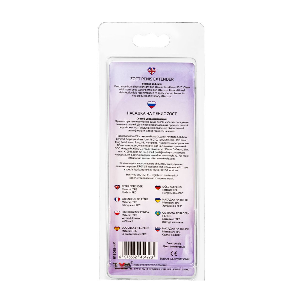 Технические характеристики Насадка на пенис рельефная A-Toys by TOYFA Zoct, TPE, фиолетовый, 13,5 см