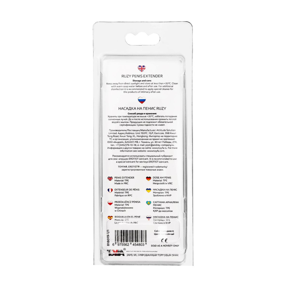 | Основной материалTPE | Основной цветПрозрачный | С вибрациейНет |