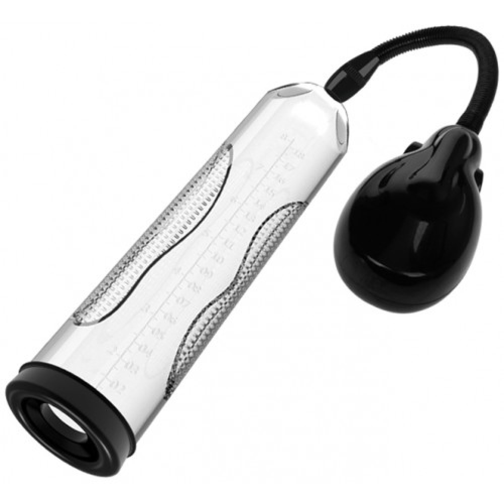 Прочная колба изготовлена из прозрачоного пластика и снабжена линейкой, чтобы оценивать результат и прогресс при регулярном использовании. Градуированная шкала позволяет отслеживать увеличение длины в режиме реального времени.