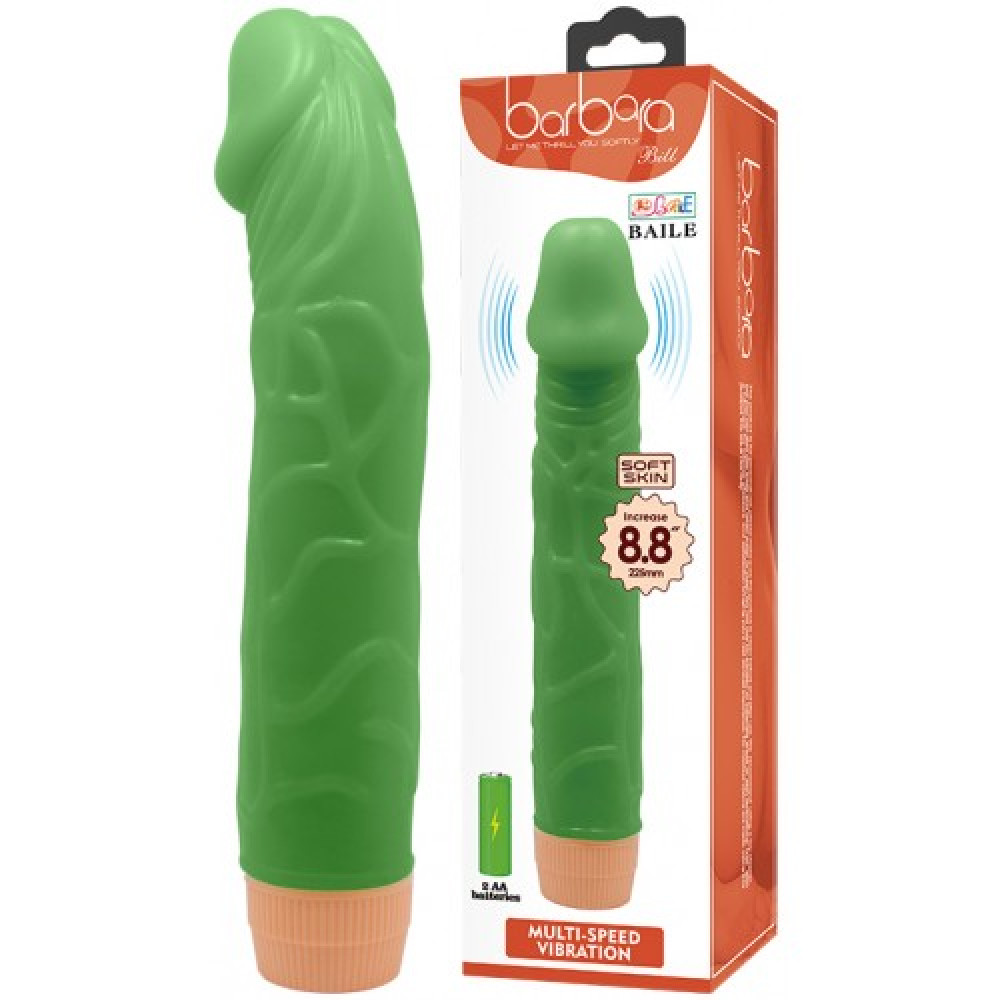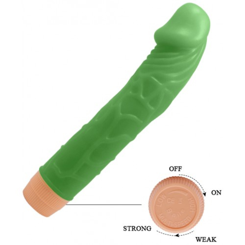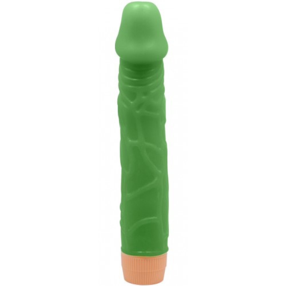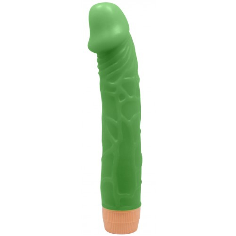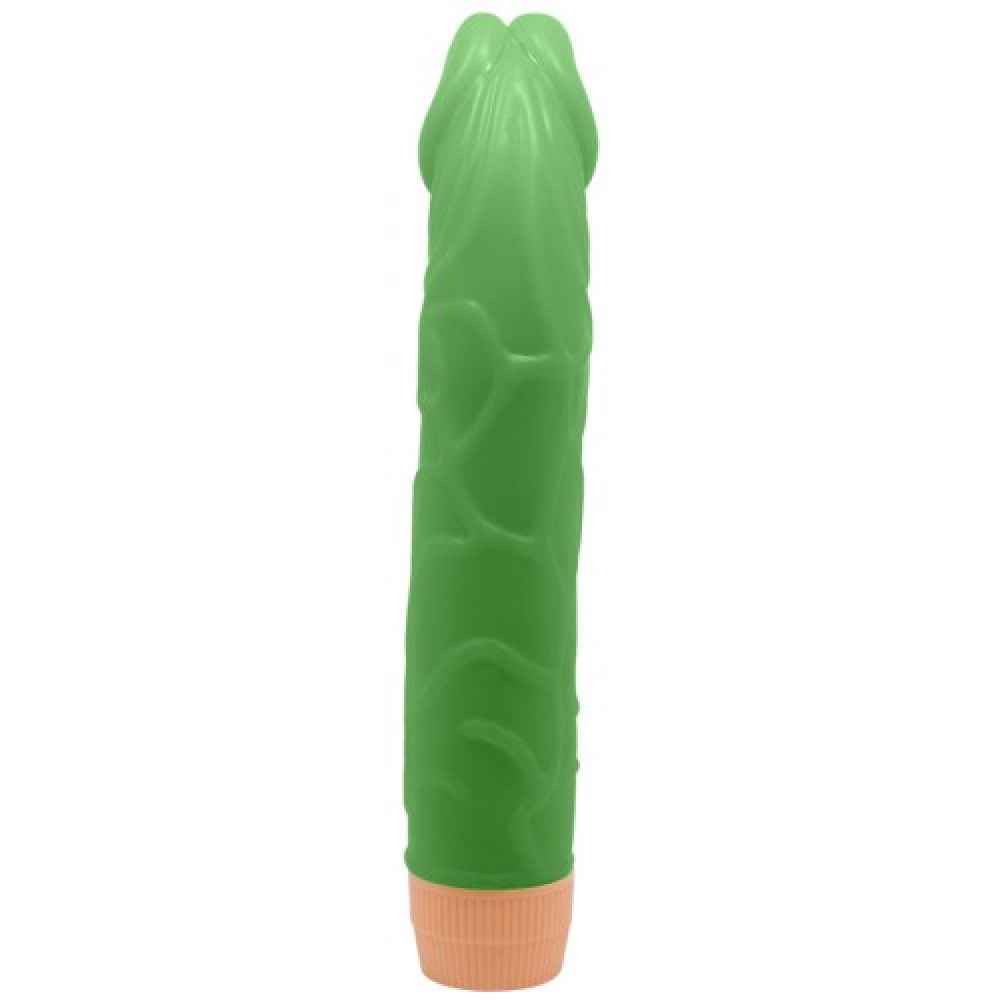 Светящийся в темноте зеленый вибратор с загнутой головкой Barbara Bill 23 см.