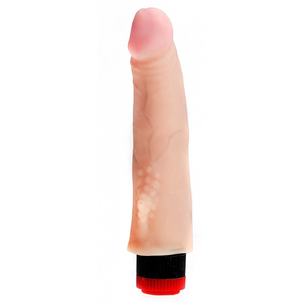 Вибратор реалистичный интим-аксессуар, предназначенный для мастурбации и нежной стимуляции. Материал изделия имитирует текстуру кожи человека. Этот игрушка выполнен в форме настоящего полового члена и имеет крупную головку, хорошо прорисованные венки по длине ствола, а также мошонку округлых форм, что позволяет ощущениям быть такими, как во время полового акта с партнером. Вибратор может легко регулироваться плавными движениями специального колесика, расположенного в его основании.
